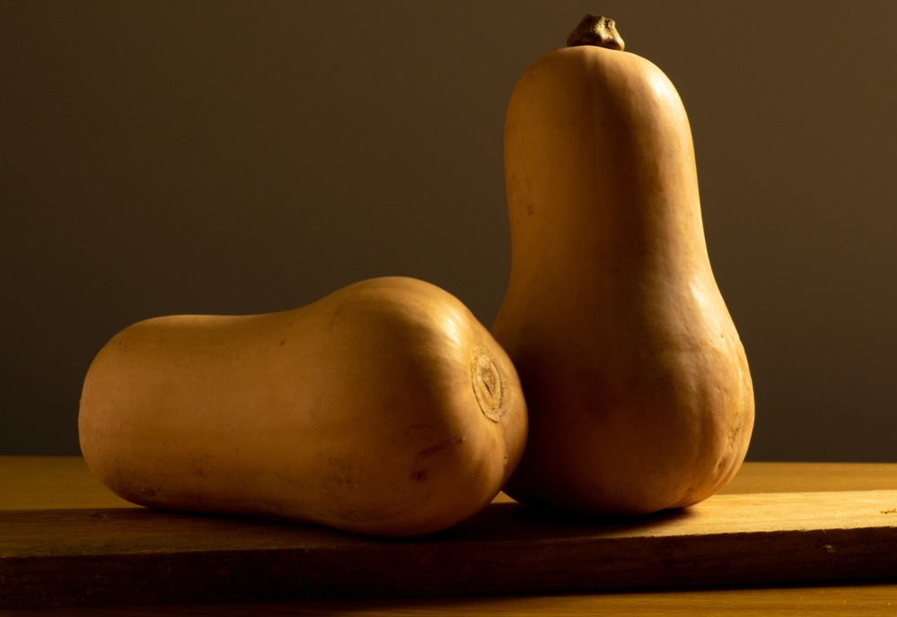 Lavez, épluchez et coupez le butternut en cubes, demi-lunes ou en deux dans la longueur (selon la recette).