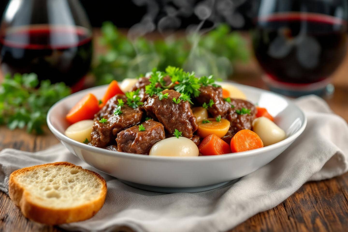 Le bœuf bourguignon express s’apprécie aussi préparé la veille. Une réchauffe douce le lendemain permet de révéler encore davantage de parfums, tout en facilitant l’organisation pour un repas festif sans stress.