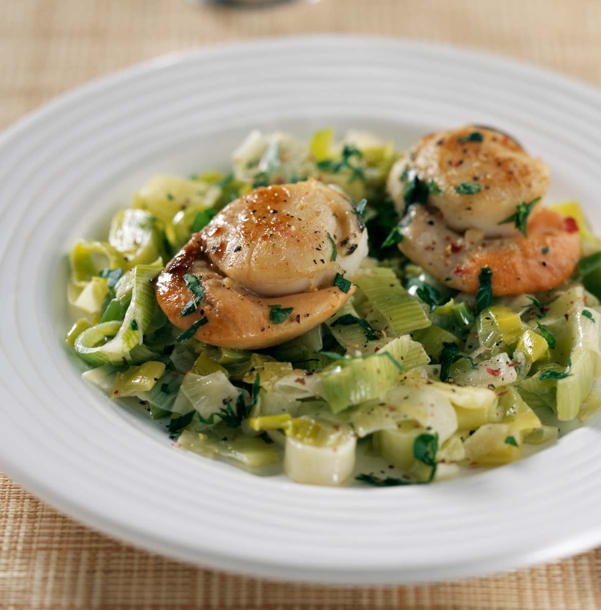 NOIX DE SAINT-JACQUES SUR FONDUE DE POIREAUX